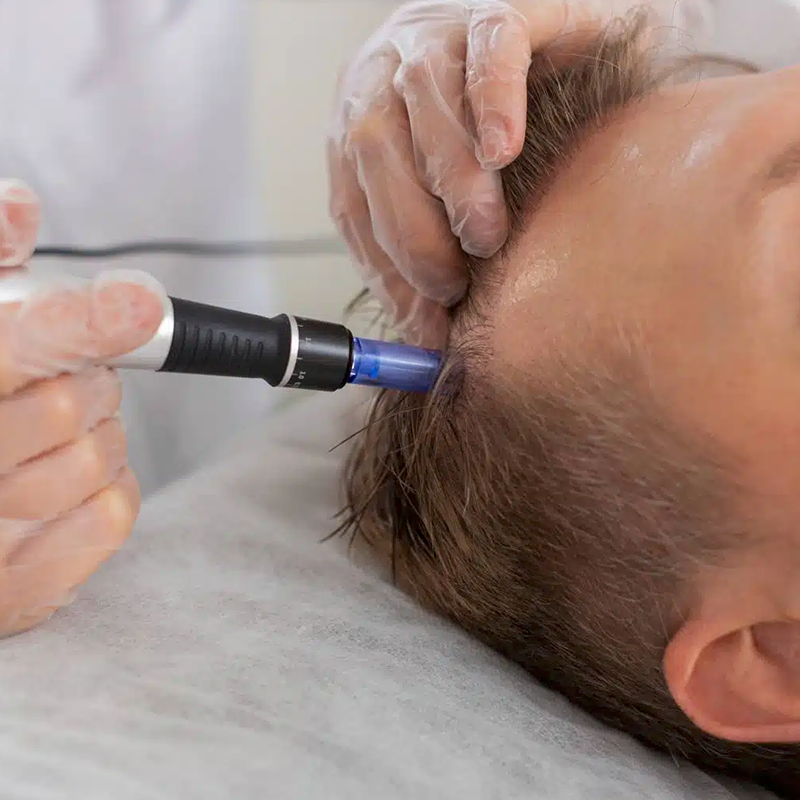 During the needling process, clinical-grade serums are infused into the micro-channels. These active nutrients reach the deeper dermis or hair follicles with significantly higher bio-availability than topical application.